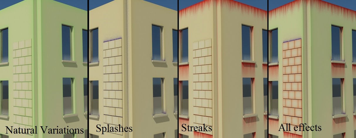 1_resizeRichDirt  is a fast and easy way to enRich your 3D renderings by adding simple and advanced dirt effects and give them a dramatically real look in full resolution. Now you can age your 3D surfaces and give them a stained real look just the way dust, rain and water flows affect the look of actual buildings. Apply the desired effects on wall edges, windows and even the thinnest objects such as tiles and have bring them to life. Impress your customers with never before seen quickly generated dirt effects that you can easily control with a few clicks