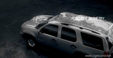 The Collision Deformer allows you to collide objects with polygon geometry, using projected collisions (directional, concentrical and cylindrical). This method does not require a dynamics simulation. Thus the collision effect is computed interactively while moving objects in the scene which provides very good control over the final deformation. Typical applications include indentations like e.g. footprints, shrink wrapping, contact animation, skin sliding (muscles, bones) and high viscosity liquid surface simulation. The deformer can also be used to sculpt the target geometry, using non elastic dynamics.