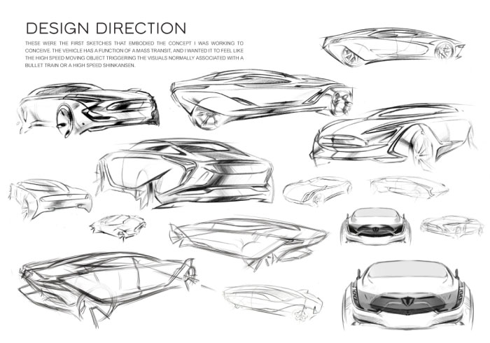 The futuristic vehicle was inspired by the NASCO corridor project, a proposal of a high-speed highway that would run from Northern Canada to Southern Mexico through the United States.