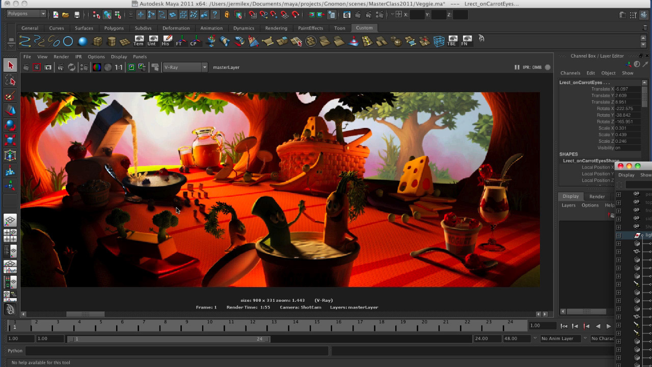 This week, The Gnomon Workshop welcomes back Pixar Lighting TD Jeremy Vickery for his second tutorial release. In Efficient Cinematic Lighting, Jeremy delves deeper into his lighting strategies and goes in depth on topics such as lenses and layout, composition and framing, lighting for tone and mood, as well as various lighting techniques within Maya and VRay. Jeremy also shows how to handle various day/night lighting conditions, as well as how to use implied lighting and light pools to provide the illusion of an existing world outside of the camera view. This lecture is packed with information that will defintely add impact and a sense of artistry to your renders.