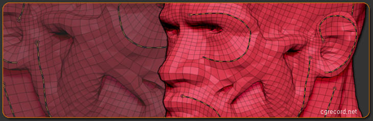 Mask Peaks and Valleys function detects portions of the mesh with the greatest detail density. This function is used internally by QRemesher but is also available for general use via the AutoMasking options.
