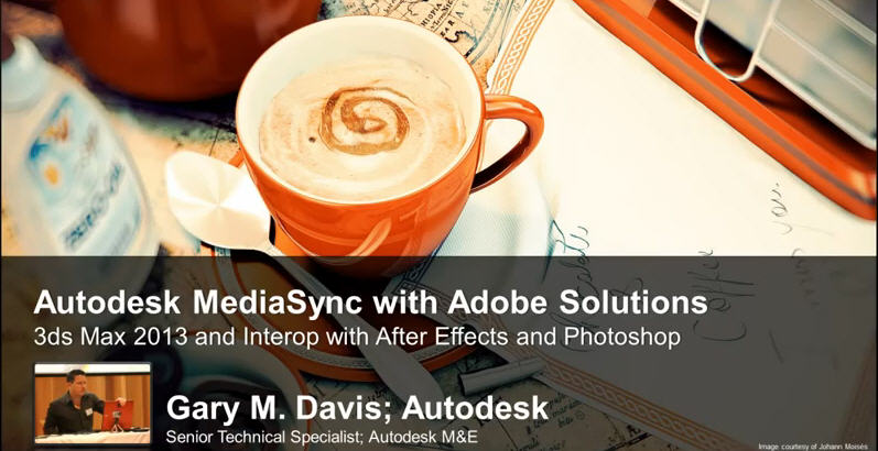 Senior Technical Specialist at Autodesk - Gary M Davis shows Us the MediaSync interop between Autodesk 3ds Max 2013, Adobe Photoshop and After Effects.