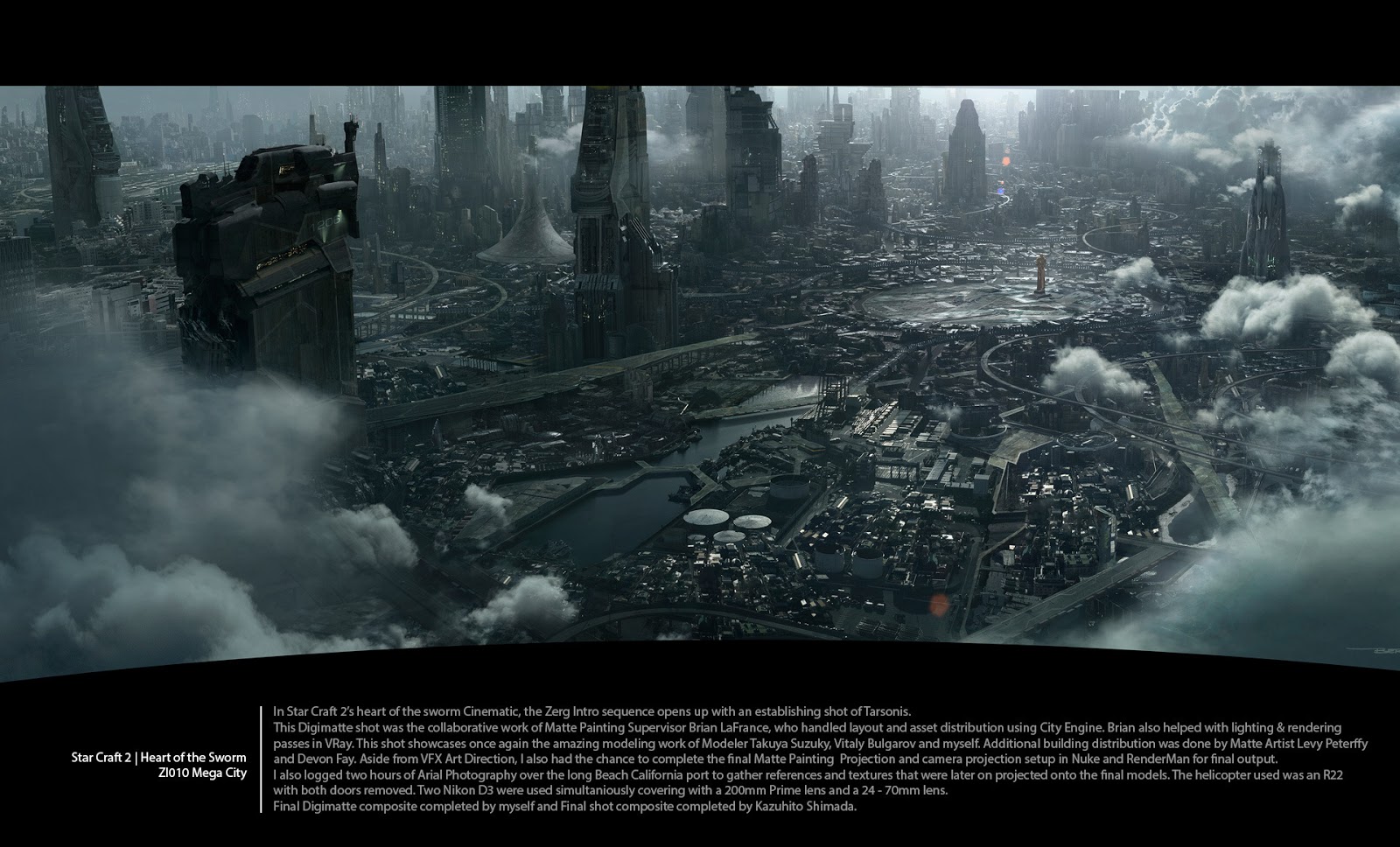 Matte Painting works of Art Director at Blizzard Entertainment: Jonathan Berube included some works for World of WarCraft, using tools like: Maya, RenderMan, Nuke, Photoshop
