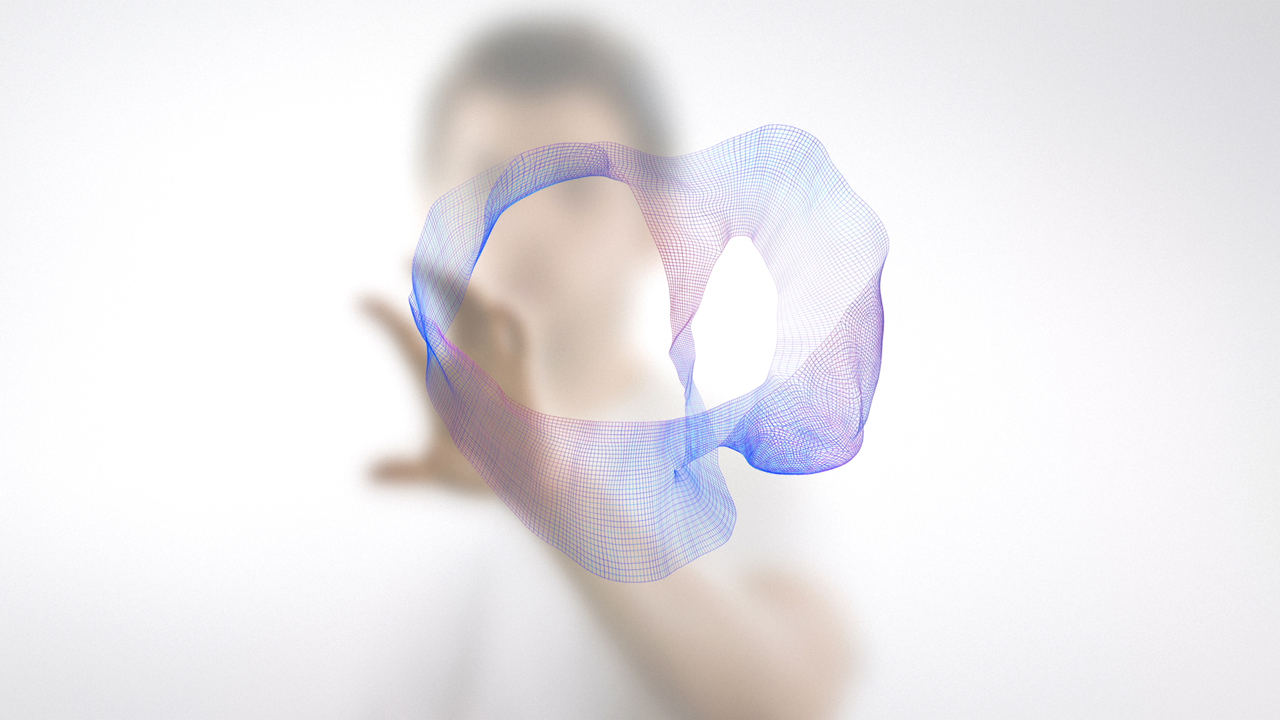 The piece begins with colorful threads on a field of white, which form a 3D helix structure. A figure then appears in the background, who touches the graphic, sending a rainbow pattern of paint in motion, which forms a circle. The circle shrinks away before transitioning into a dazzling, full-screen explosion of vibrant swirls of paint, where the Vilcek Foundation's logo resolves.