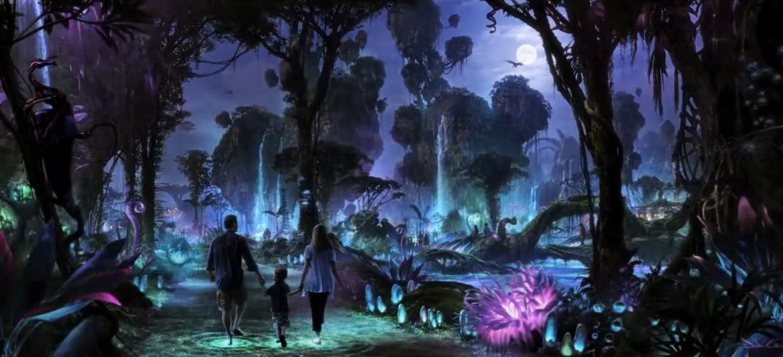 As these concept renderings show in epic scale, in the world of AVATAR guests will encounter awe-inspiring floating mountains and wander through a nighttime jungle of bioluminescent plants that are alive with light and sound. Guests will also discover what it feels like to soar into the sky riding a Banshee.