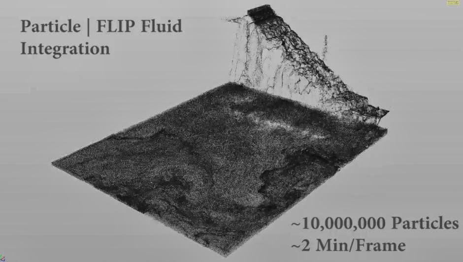 The video is showing the Houdini 13 FLIP Fluids integration with New Particles