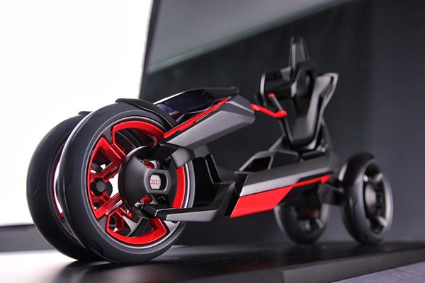 Developed with guidance from the Audi Design Concept Studio and KISKA design, the Audi Nexus concept is a purpose-driven and efficient vehicle designed exclusively for the urban landscape. Its slim silhouette combines the advantages of both two and four-wheeled vehicles. It leans into curves for the thrill of riding a motorcycle, but its frame provides the security, safety and stability of a car. No wider than a scooter, it zips through the city and nimbly navigates traffic.