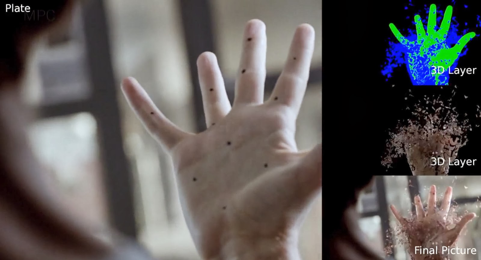 Using references from X-Men and Iron Man, MPC’s VFX team designed and researched various ways for the transformation to take place and its subsequent effect on the actor’s skin.Following the pre-vis, a number of concept shots were created in Photoshop ranging from dust particles, snake-like peeling and tearing and ripping of the skin.