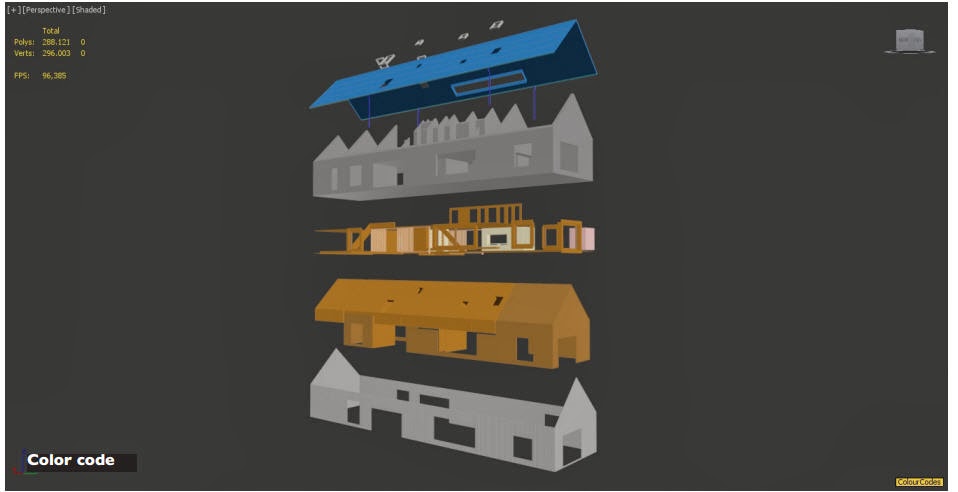 His approach is Modelling for photorealism. Starting with the model creation, to have a sense of scale while eyeballing, he uses a chair for the interior scenes and a 1x1m cube for the exteriors. Scene organization is a necessity to a fast workflow, He keeps all the layers from the beginning including