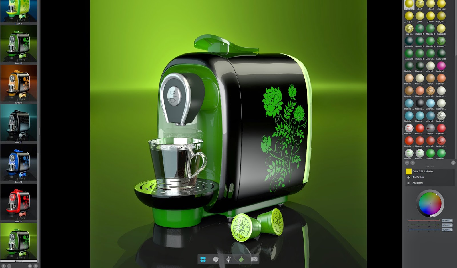 Iterative workflow - Make almost limitless changes to a 3D scene's colors, textures, decals and even lighting set-ups.