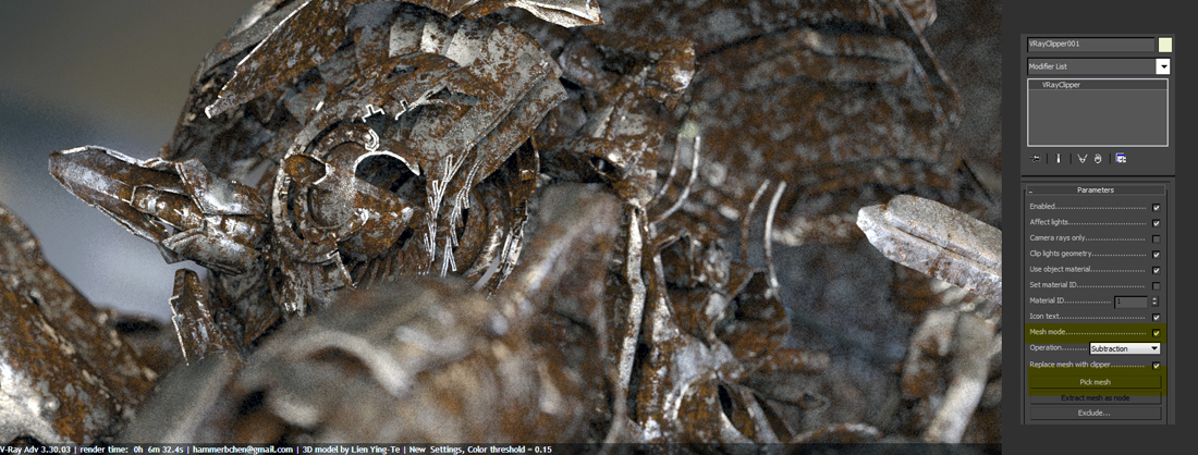 Improved V-Ray Clipper with Render-Time Booleans, supports cutaways using any arbitrary mesh