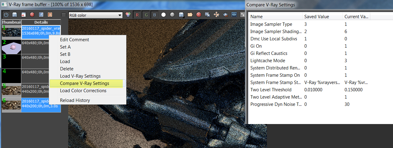 • "Compare V-Ray Settings" is a handy tool for comparing settings differences between images.