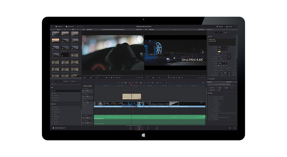 DaVinci Resolve 12.5 also introduces ResolveFX, a powerful new framework for native GPU and CPU accelerated effects. This release includes ResolveFX plug-ins such as GPU accelerated color space and gamma transformations, along with more traditional effects such as lens blur, light rays, emboss, dent, vortex, mirrors, gaussian and other blurs, glows, ripples, and more. Advanced ResolveFX tools like film grain, lens blurs and flares are available with DaVinci Resolve 12.5 Studio.