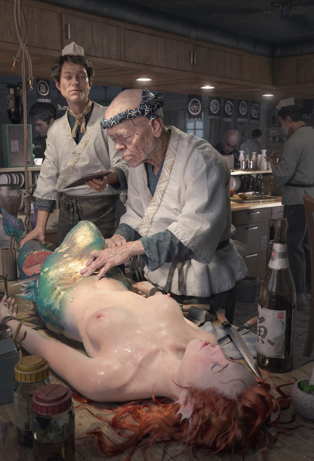 inspired by Kim Jung-Gz's s sketch work, Mermaid is personal 3D work by Lead environment Artist at Mindwalk Studios - Rocky Meng. He used Zbrush and Maya for modelling, texturing in Mari, Photoshop and Ddo. Rendered in Arnold Render