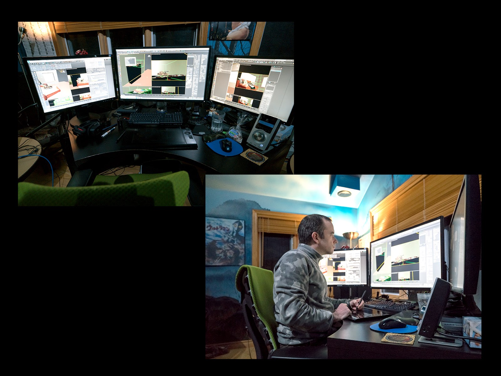 Before shooting the plates I could do some tasks like rigging the tank, preparing assets (importing meshes, redoing shaders) and making some tests like the tank cannon blast test. Then the shooting took place on November 15 leaving me one month to track all the cameras (a dozen complicated ones and a few simpler ones), do all the animations, lighting, fluid sims and renderings. When I saw the plates, all with complicated camera motion, lots of motion blur, grain, moving object, smoke and debris, I realized I had to hire a helper (my long time friend Joseph Tran) to help me on the camera tracking and model some missing pieces like the chopper missile launcher. The shots could not be tracked automatically so it took around 2 weeks only for camera tracking which left me very few hours a day to sleep during that month in order to complete the rest of the job!