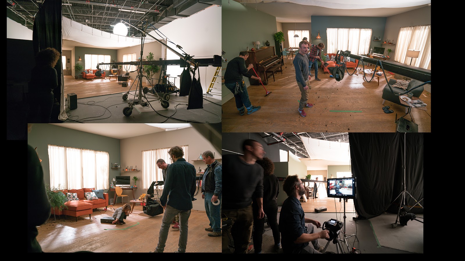 There was still many practical pyro: sparks on the ceiling lamp behind the chopper, flashes on the ground when the soldiers fall and on the wall behind the missile launcher, small blasts on the couch, the computer screen disintegration and the biggest one: the piano explosion.