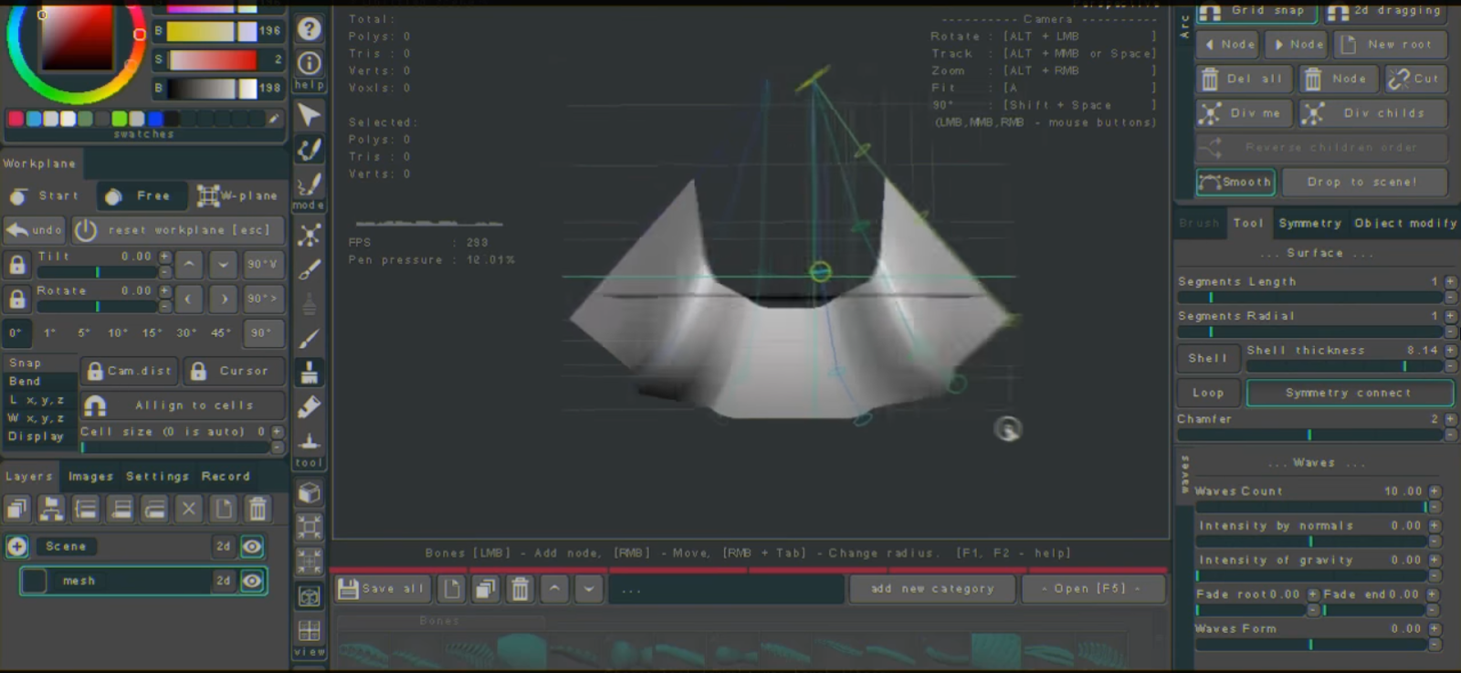 - "Surface" tool to create a surface between the bones, you can adjust the thickness, smoothing, add waves. Useful to make machinery surfaces or cloth.